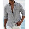 Chemise Rayée Homme Manches Longues Printemps et Automne Gilet Boutonné Poche Ample Chemise Décontractée