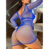 Sex Underwear Mesh Sexy Fishnet onesie Pajamas Long Sleeve Hip Wrap Skirt Back Tights