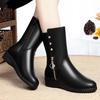 Bottes mi-tubes confortables et chaudes en cuir souple pour femme, chaussures décoratives en métal et coton, bottes de neige plates en peluche pour mère