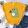 Cute Little Dinosaur Confesses Love Printing Tops Womens Soft Street T-Shirts Sport Hip Hop Tees Clothing Casual Short Sleeve
