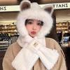 Plush hat scarf integrated women's autumn and winter cute warm ear protection scarf versatile fox ear hat
