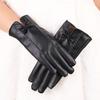 Women's warm leather gloves new winter gloves bow fleece thickened cold-proof cycling touch screen gloves