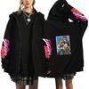 Anime JOJO's Bizarre Adventure Sweat-shirt à capuche zippé en polaire imprimé Automne Hiver Décontracté Adolescent Sport