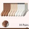 5/10 Paires Chaussettes Simples Hautement Élastiques Décontractées pour Filles Rayures Maillard Chaussettes Style Coréen pour Femmes