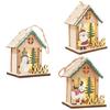 Décoration de Noël en Bois avec Lumière LED Sculpté en 3D Suspension Étoile en Bois/Maison de Village/Cloche/Ornement Boîte Cadeau pour Décoration d'Arbre de Noël