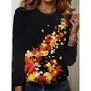 Ladies' Leaf Print Round Neck Long Sleeved T-shirt Fashionable Casual Top Pullover Clothing