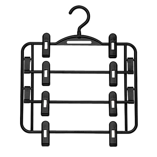 Sawafuji NB-04 4-Tier Skirt Hanger, Black, 400mm Wide, Made in Japan, Non-Marking, Space-Saving, with Clips and Non-Slip Clips, Fits Pants and Trouser