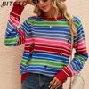 BITCED Automne/Hiver Tricots Colorés Pull Tricoté Rayé à Col Rond et Manches Longues Coupe Décontractée Décontracté Color-block Tricot Effet Usé