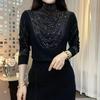Socialite Lace Ruffle Velvet T-shirt Women's Autumn and Winter New Versatile Top French Style