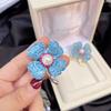 Épinglette Corsage Trèfle à Quatre Feuilles Bleu: Broche Fleur Élégante & Clip Cardigan
