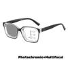 Pochromic Multifocal Reading Glasses for Women Men Suqare Frame Progressive Presbyopia Glasses Ultralight Anti-UV Presbyopia