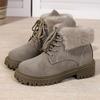 Bottes de cheville à lacets en fausse fourrure tendance pour femmes Automne Hiver Chaussons courts chauds en peluche Femme Confortables Antidérapantes Rembourrées en coton Chaussures 42