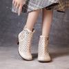 Nouvelles bottes cool en cuir ajouré pour femmes, bottines courtes rétro à talons hauts épais, trou respirant, semelle souple, sandales montantes pour mère