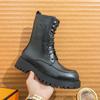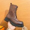 Bottes Martin automne et hiver nouvelles bottes hautes pour hommes britanniques tube long à lacets haut-dessus bottes en cuir à semelles épaisses rehaussantes bottes de locomotive