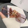 Nouvelles Lunettes de Soleil avec Monture Métallique Spéciale à Bord Coupe Sans Monture, Lunettes de Soleil Décoratives Tête de Léopard pour Hommes et Femmes 90283