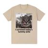 I Survived Today 's Tummy Pain T-shirt Meme cat pattern T-shirt men short-sleeved casual 100% cotton T-shirt