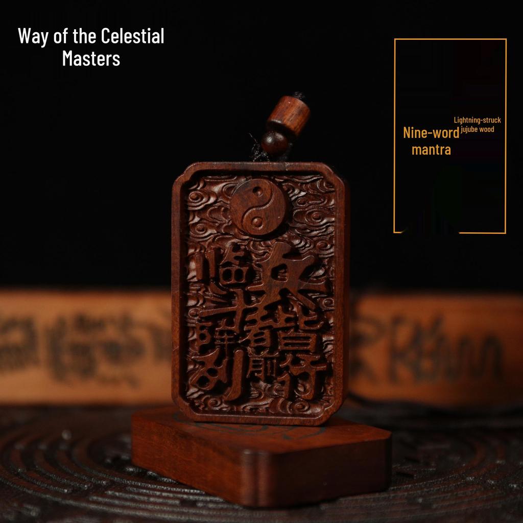 Longhu Mountain Jujube Wood Nine-Character Mantra Peace Pendant - Taoist Magic Ornament