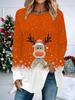 Femmes Grande Taille Printemps Noël Imprimé Confortable Manches Longues Col Rond T-shirt Décontracté Ample Mi-Longueur Hauts