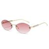 Lunettes de soleil ovales vintage sans monture pour femmes et hommes, marque de luxe, designer, lunettes de soleil punk populaires, élégantes avec des perles, protection UV400