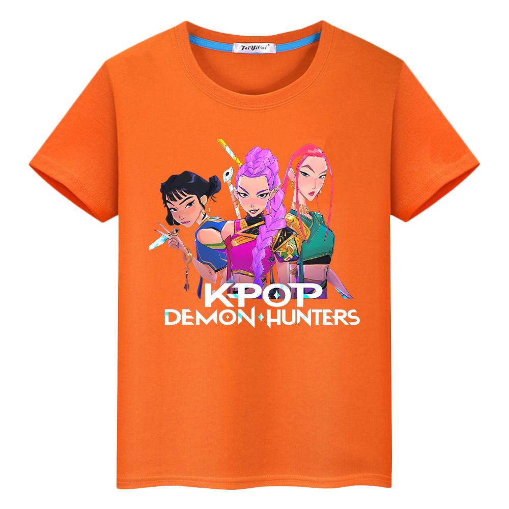 kpop demon hunters Print 100%Cotton Cute Tees y2k Christmas t shirt for kids boy 10year anime Short Kawaii Tops girls clothes