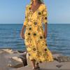 Robes Pour Femmes Tunique Imprimé Vintage Taille Ajustée Robe Midi Été Décontractée Manches 3/4