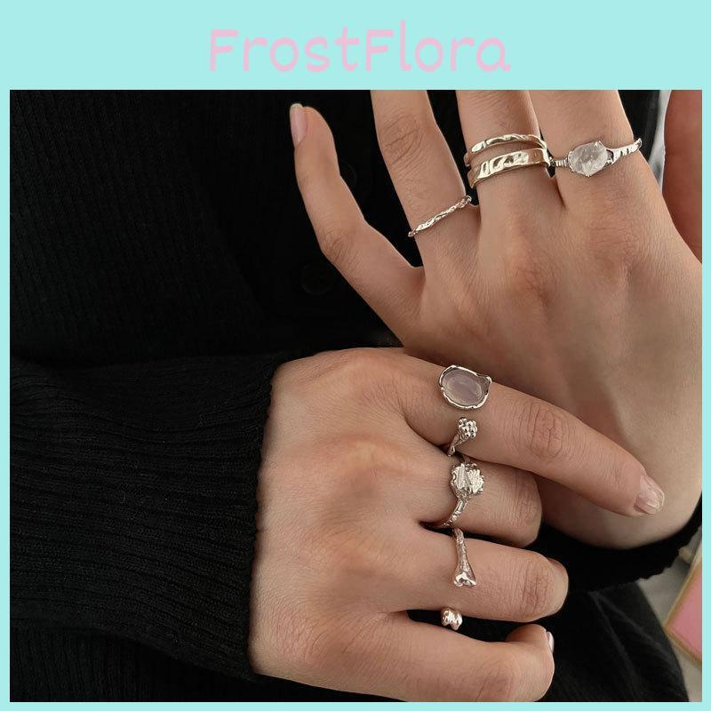 Stunning 925 Sterling Silver Korean Geometric Open Adjustable Ring With Unique Gemstone Crystals
