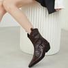 Bottes courtes à bout pointu style western mode pour femmes, bottines à cheville à talon carré épais à encolure en V froissée, bottes décontractées à la mode printemps-automne