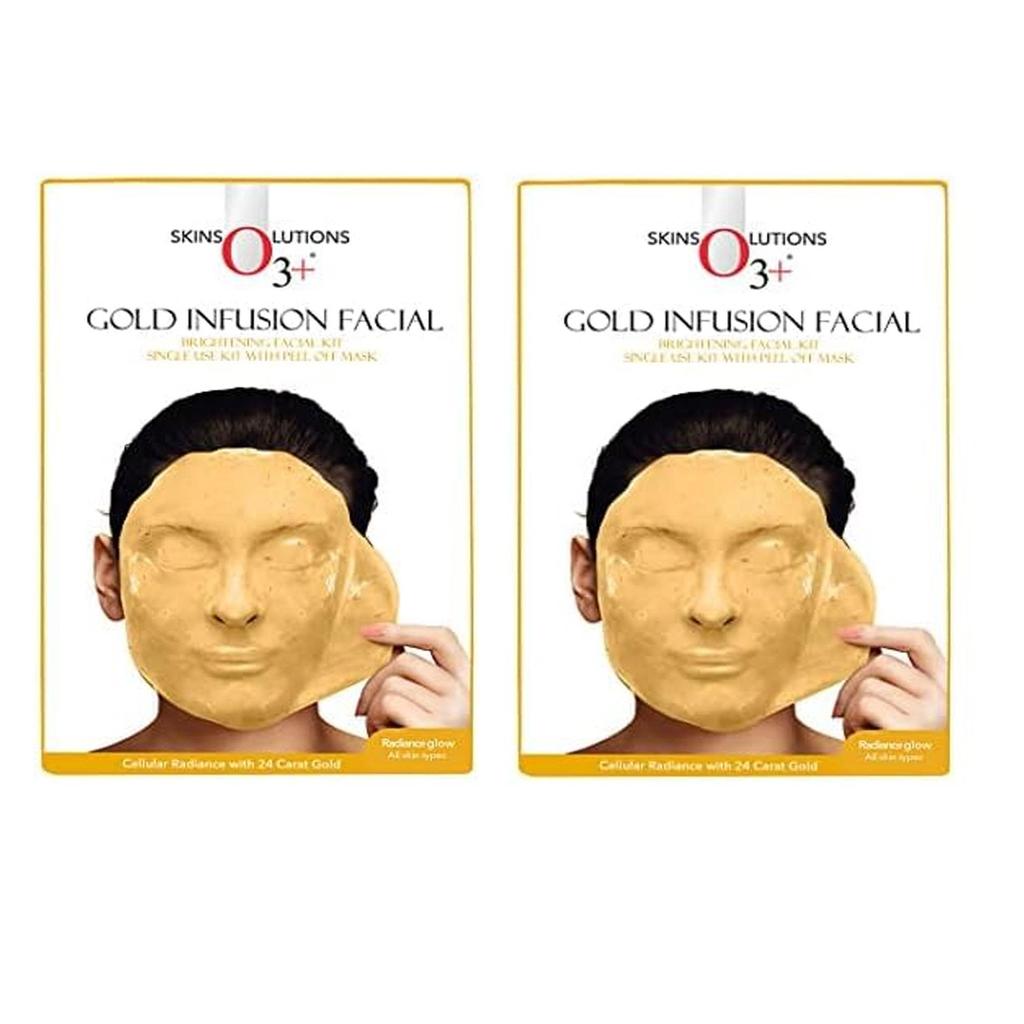 O3+ Gold Infusion Facial Brightening Kit with Peel Off Mask 45 gm Pack of 2 for Radiance Glow