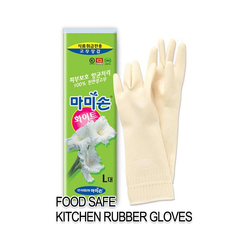 MAMISON Food Safe Kitchen Rubber Gloves White Large | Cooking Dishwashing Household Gloves
