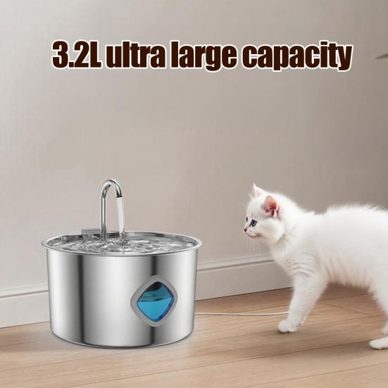 3.2L Pet Water Fountain Stainless Steel Automatic Water Dispenser Cat Water Fountain with Clear Window Quadruple