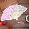 Éventail pliant chinois japonais à tige en bois, éventail de danse classique à pompon, élégant, pour femme, fête, artisanat, cadeau, décoration de la maison