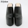 Mode Eilyken Design Super Plateforme Compensée Chaussons Femmes Mode Été Uni Bout Rond Talons Hauts Chaussures Mules Dames