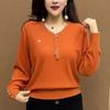 Spring and Autumn Women's V-Neck Knit Sweater Loose Rhinestone Knit Pullover Plus-Size Sweater