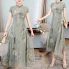 Women Cheongsam Dress Short Sleeves Stand Collar Long Skirt Chinese Style High Waist A-line Skirt