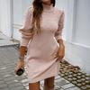 Women's Clothing Autumn Winter Elegant Style High Neck Fitted Knit Dress