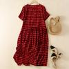 ZANZEA Women Casual Round Neck Grid Print Loose Short Sleeve Dres