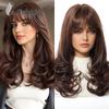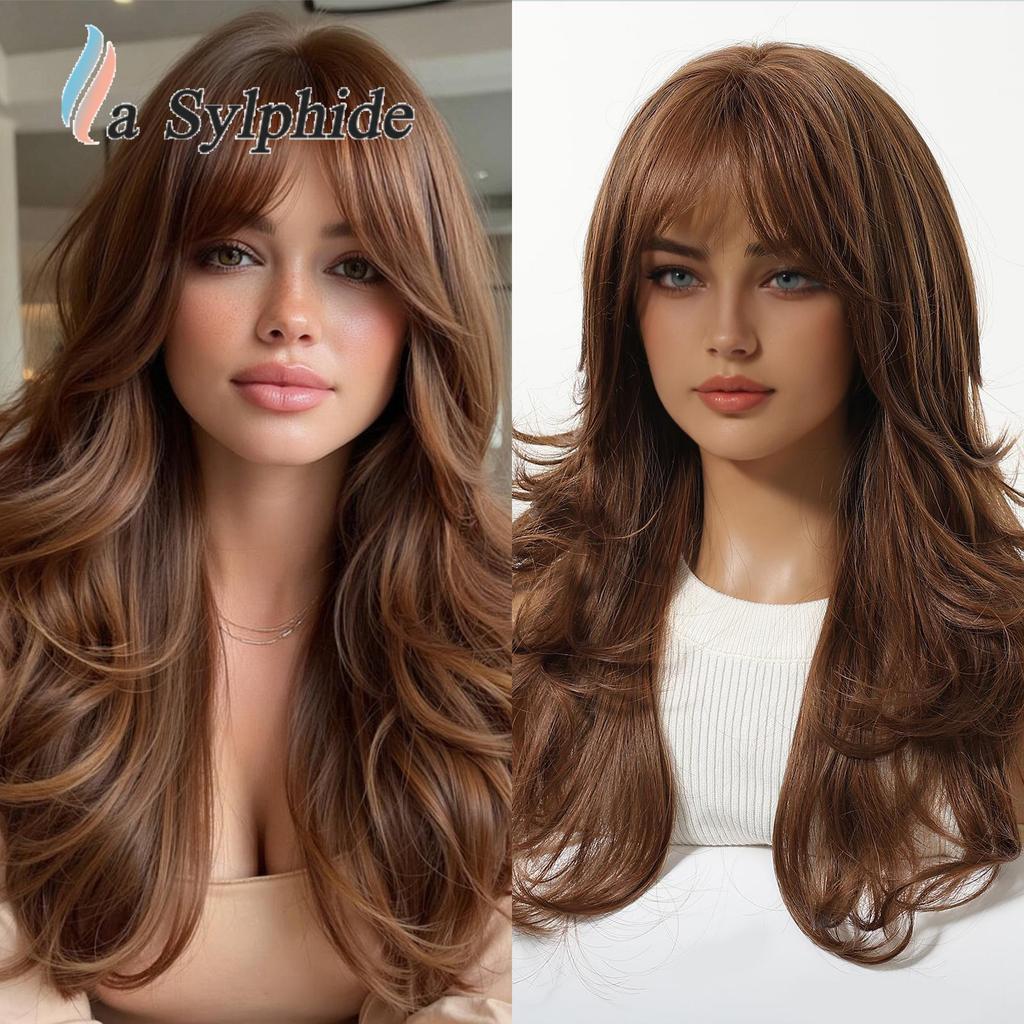 Perruque Marron Foncé pour Femme avec Frange Aérienne - Soie Haute Température, Finition Naturelle Lisse, Filet Rose