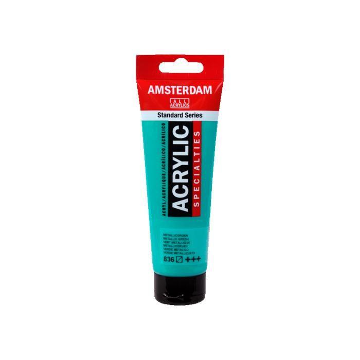 Peinture acrylique - AMSTERDAM - 120 ml - Vert métallisé - Résistant à la lumière - Satiné