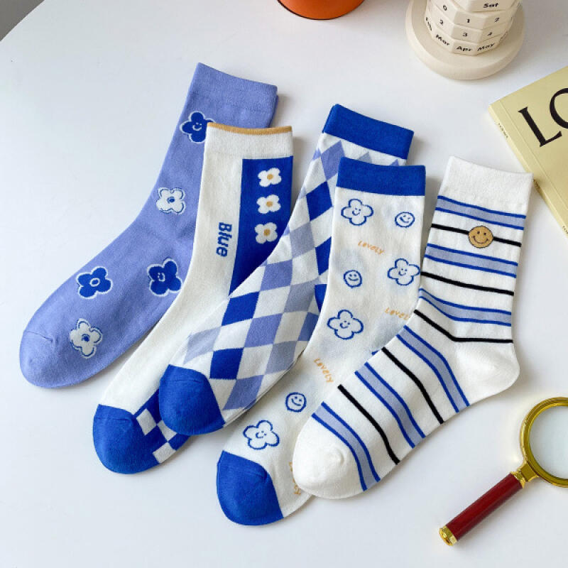 [5-Pair Set] Eune Various Blue Long Socks Set