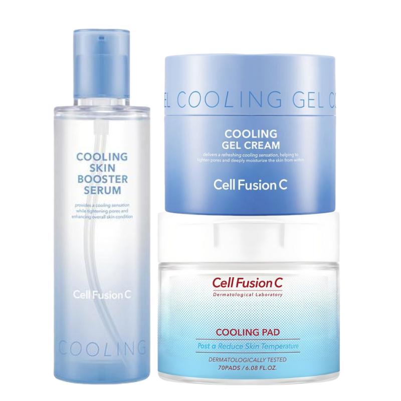Cell Fusion C Post Alpha Cooling Skincare Set (Cooling Pad 70 Pads + Skin Booster Serum 150ml + Gel Cream 50ml)