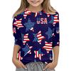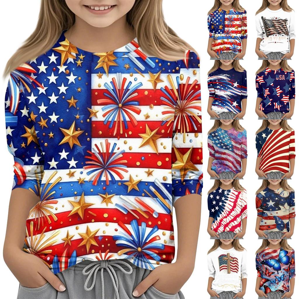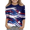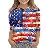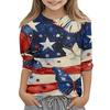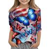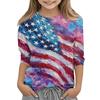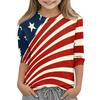 T-shirt décontracté pour enfant avec imprimé Jour de l'Indépendance, col rond, manches trois quarts