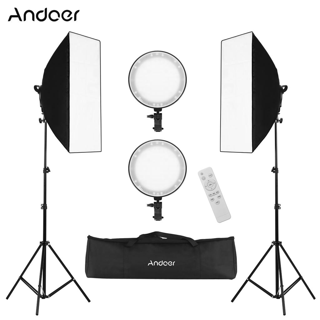Andoer Professional Studio Photography Softbox LED Light Kit Including 50*70cm Softboxes * 2 + 45W
