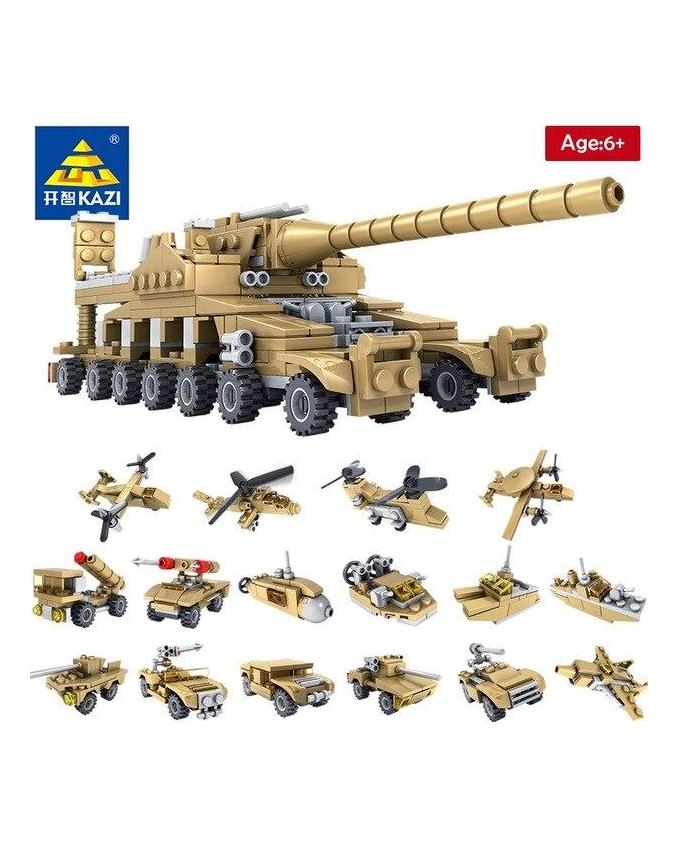 Zestawy czołgów wojskowych KAZI Klocki 16 w 1 Model klocki do budowy zabawki dla dzieci zabawki prezentowe dla chłopca Modułowe plastikowe klocki