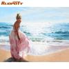 RUOPOTY Bezramowe nadmorska dziewczyna ręcznie malowany obrazek według numerów rysunek obraz olejny obraz ścienny na płótnie do dekory domu Diy prezent art