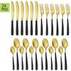 24 sztuk czarne sztućce ze stali nierdzewnej nóż obiadowy łyżki widelec łyżki deserowe Western Sliverware zestaw naczyń kuchennych