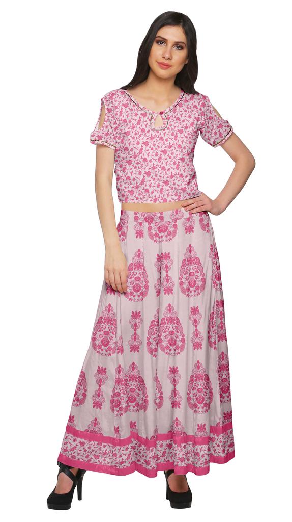 Moomaya Crop Top With Loose Palazzo Set For Women Printed Ethnic Clothing