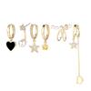 ANENJERY Cyrkon Gwiazda Serce Perła Chwost Litera D Kolczyki Koła Dla Kobiet Osobisty 6-częściowy Zestaw Kolczyków