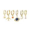 ANENJERY 6-częściowe zestawy kolczyków kółek z cyrkoniami w kształcie samolotu, planety, księżyca i gwiazdy dla kobiet, luksusowa błyszcząca biżuteria