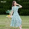 Vestidos Vintage nadruk w stylu vintage bufiasty rękaw lato plaża słodkie sukienki na co dzień kwadratowy kołnierz kwiatowy maxi długa sukienka festa