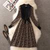 Jesień nowy O-neck Patchwork Twist sztruks elegancka dama dzianinowa sukienka z kwiatowym nadrukiem kobiety latarnia rękaw szarfy kokarda sukienka midi